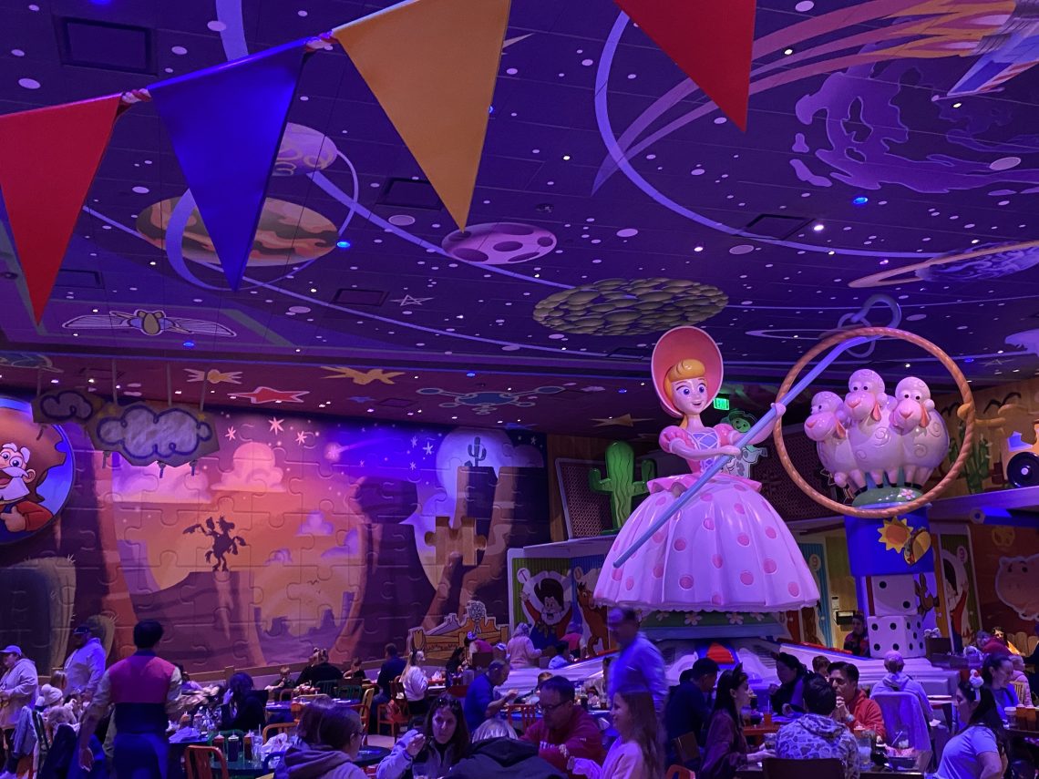 おもちゃ箱のような内装の店内が素晴らしいです。作中のおもちゃ達の持ち主であるアンディの足音がすると、おもちゃのフリをして食事する手を止めなければいけないという演出がとてもユニークなレストランです。店内のウェイターさん達の動きも一時停止します。こんな体験なかなかできません。