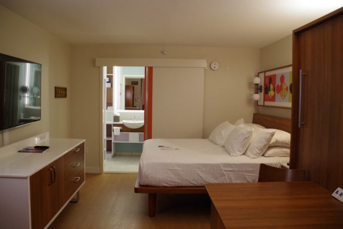 羽田を出発してトロント経由で「フロリダ ウォルト・ディズニー・ワールド・リゾート」のあるオーランドへ。夜中の0時前くらいにオーランドの空港に到着、シャトルバスでホテルに向かいました。客室に入った頃にはもう夜中1時をまわっていたので、すぐに就寝。宿泊はディズニー直営ホテルの「ディズニー・ポップ・センチュリー・リゾート」。直営ホテルはさまざまな特典が付いているのでうれしいです。リノベーションされたばかりで機能的!広さも充分で、フロントにも近く、快適そのものでした!
