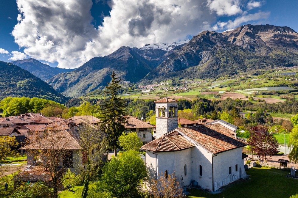 イタリア(春)、アッシアーノ。ヴァル・ドルシアの典型的な風景。