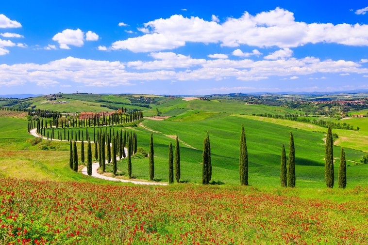 トスカーナ州のキアンティ地方では、美しい丘陵地帯でのワイン造りの様子を見学できます。試飲を楽しみながら、イタリアワインの奥深さを体験できます。