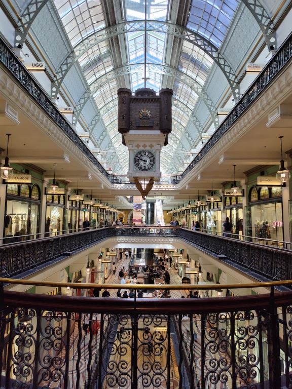 3日目は、ショッピングを楽しむ一日となりました。まず訪れたのは、クイーンズ・ビクトリア・ビルディング(通称QVB)。壮麗な内装に目を奪われながら、ゆっくりとウィンドウショッピングを楽しみました。