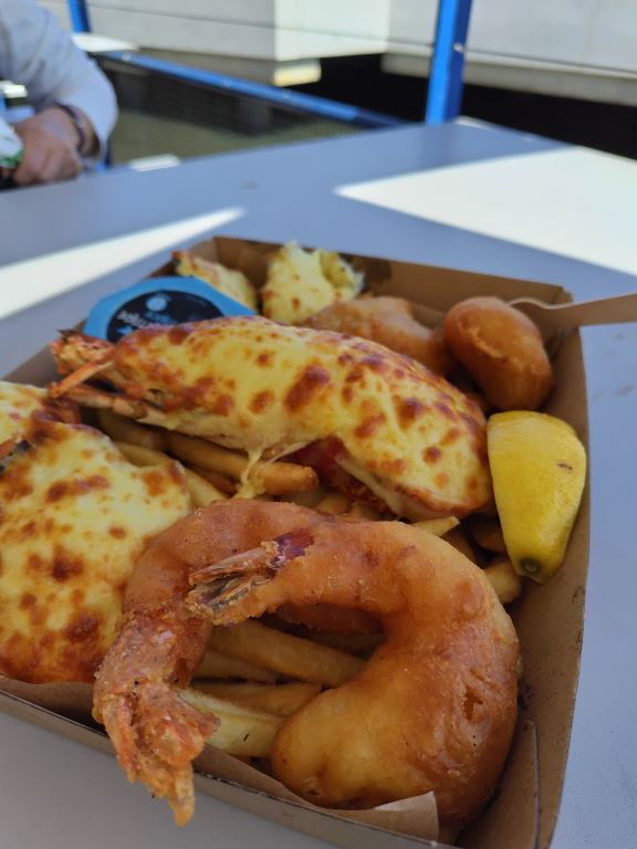 その後、お昼にはフィッシュマーケットへ移動し、新鮮な海の幸を堪能!前日同様とても気持ちの良い気候に恵まれ、漁港のテラス席でいただくシーフードプラッターはとっても美味しかったです!