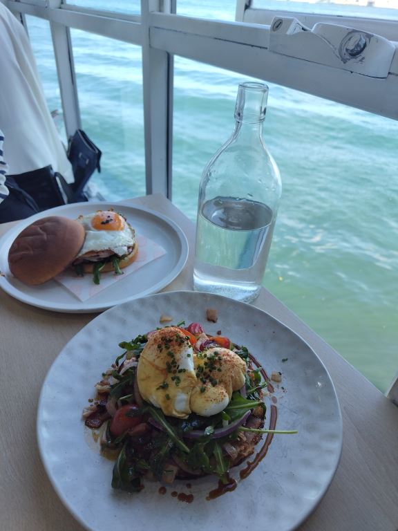 ランチは、ノースシドニーにある「セルシウスコーヒー」へ。とても楽しみにしていた場所で、ウキウキしながら向かいました。桟橋の上に建つレストランは、まるで海に浮かぶ離島のよう。眺望の良い席に座ることができ、料理も美味しく、とっても素敵な時間を過ごすことができました。