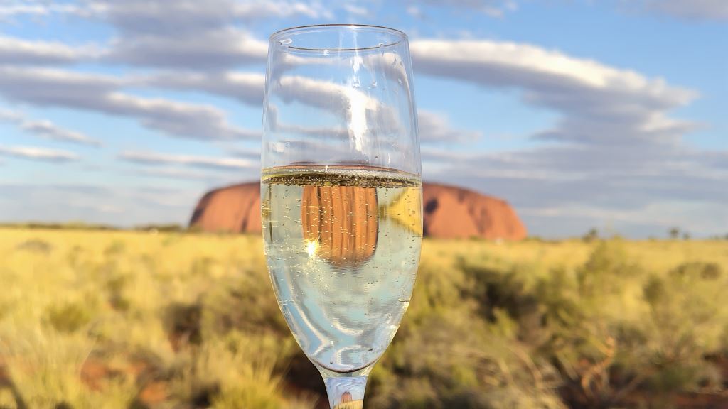 シャンパンとウルルで記念ショット