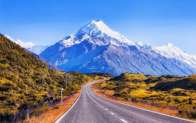 - マウント・クックはニュージーランド最高峰の山で富士山と同じくらいの高さ3,724mを誇ります。登山家も訪れる山ですが険しい道ばかりではなく、数々の湖や、独自の生態系の動植物を観賞しながら気軽にトレッキングできるルートも整っています。観光拠点となるプカキ湖のほとりにあるマウント・クック村にも遊歩道が10コースほどあります。湖の周辺の絶景サイクリングもおすすめです。