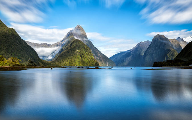 - ミルフォード・サウンドはニュージーランドの南島のフィヨルドランド国立公園にある、世界遺産登録のフィヨルドです。穏やかな水面に映る山々の姿は息をのむ美しさ。太陽の光を浴びてきらめく水面をカヤックで進めば、360度美しい風景を堪能できる、感動の絶景スポットです。近くにはニュージーランドで最も有名なトレッキングコースと言われているミルフォード・トラックもあり、見どころ満載です。