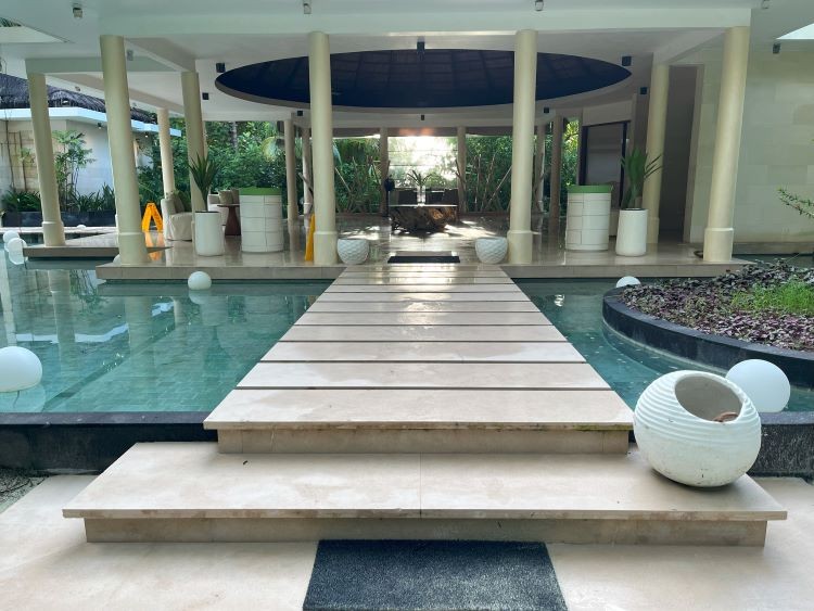 今回は屋外デッキにプライベートプールとジャグジーが付いた「プール付きデラックス水上ヴィラ」に宿泊しました!メインジェッティからみて左側がサンライズ(写真下側)、右側がサンセット(写真上側)のお部屋になっています。通常確約はできませんが手配時にリクエストしますのでご希望をぜひお聞かせください。今回はサンライズ側のお部屋に宿泊しました。