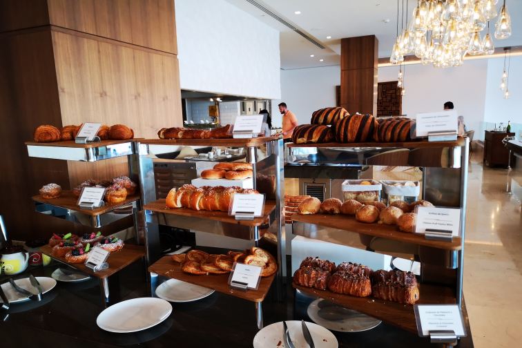 ロビー階のプールやビーチへの出入り口を通り過ぎたところにあるレストラン「ブラン」。窓際のテーブルに座れば、朝日が差してきた海を眺めながら豊富な種類の朝食ビュッフェを楽しめます。こちらのレストランでも受付にて部屋番号を伝えて入店しましょう。