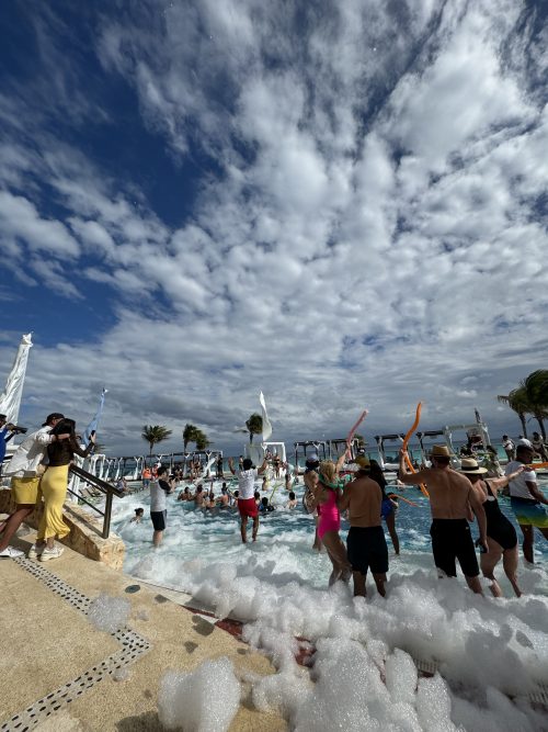 3日目は、まずはホテルのプライベートビーチでゆったりリラックス。ビーチバレーやアクアフィットネス、泡パーティーなど、ビーチでのイベントに娘と一緒に参加し、楽しい時間を過ごしました。イベントに興じているうちに、あっという間に夕方に。その後、ショッピングモール「ラ・イスラ・ショッピング・ビレッジ」へ。ゆっくりと歩いて約20分で到着。当初はブランド店でのショッピングを楽しみにしていましたが、メキシコペソの価値を考慮すると、日本で購入する方がお得だったので、結局ウィンドウショッピングを楽しむことにしました。全体的に少し割高だったため、お土産は別の場所で購入することに。夕食は娘の希望により、やはりサラダが食べたいということで再びビュッフェをチョイス。