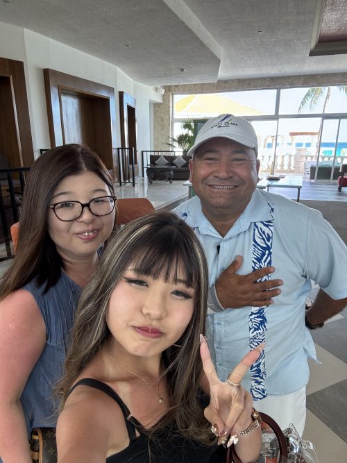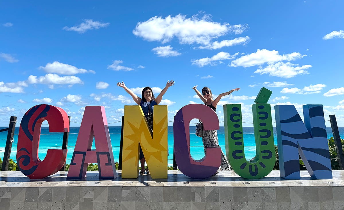 最終日は夜にカンクンを出発だったので、それまでの時間もしっかり楽しむことができました。午前中は、娘は目の前のプライベートビーチへ、また仲良くなったスタッフとコミュニケーションを取ったりして過ごしました。チェックアウト後、バスで南の方にある「カンクンサイン」というオブジェを見に行くことに。混み合っていて、記念撮影に時間はかかりましたが、カラフルで可愛らしいフォトスポットでした。その後、ホテルに戻ってから16時頃のお迎えまでカフェでゆっくり過ごしました。帰国便では、メキシコシティまでの便が遅れたためトランジットが非常にタイトで、道を間違えていたら、名指しで搭乗を呼びかけるアナウンスが流れてしまって、焦りました(笑)。どうにか無事に間に合い、帰りは日本のほうが時間が進んでいるので、旅程8日目の1月4日の早朝に成田に到着しました。