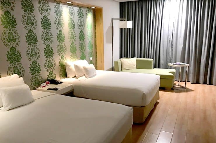 客室はナチュラルウッドのフローリングと洗練されたインテリアで、清潔感に溢れ快適そのものです。バスルームはバスタブなしのシャワーのみ。ロビーにあるNHレストランでは、ヘルシーな朝食と、終日提供しているインターナショナルな食事をいただけます。ルームサービスも利用可能。アルコールを楽しめるバー、ジムも配備されています。ホテルを出てすぐの場所にはフードコートもあり便利。