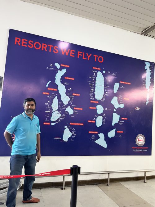 早朝の4時頃にラマダ ホテルからシャトルバスに乗り空港へ行き、7時20分の代替便で8時半頃にマーレに到着(本当なら初日に到着)。10時には水上飛行機でラビヤニ環礁にあるリゾートに向かいました。