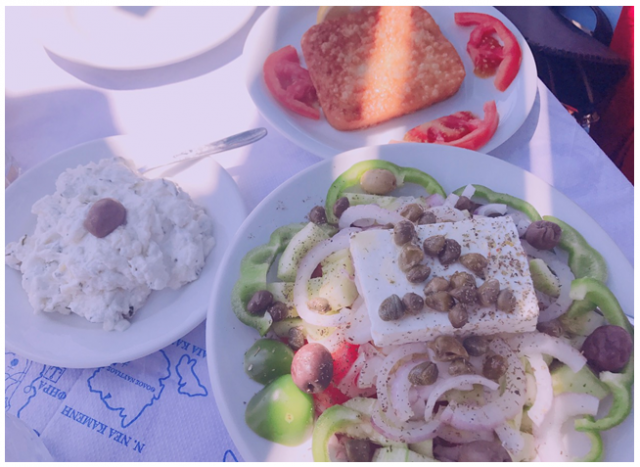 ヨーグルトとキュウリ、ニンニクが入ったサラダ、”ジャジキ”。