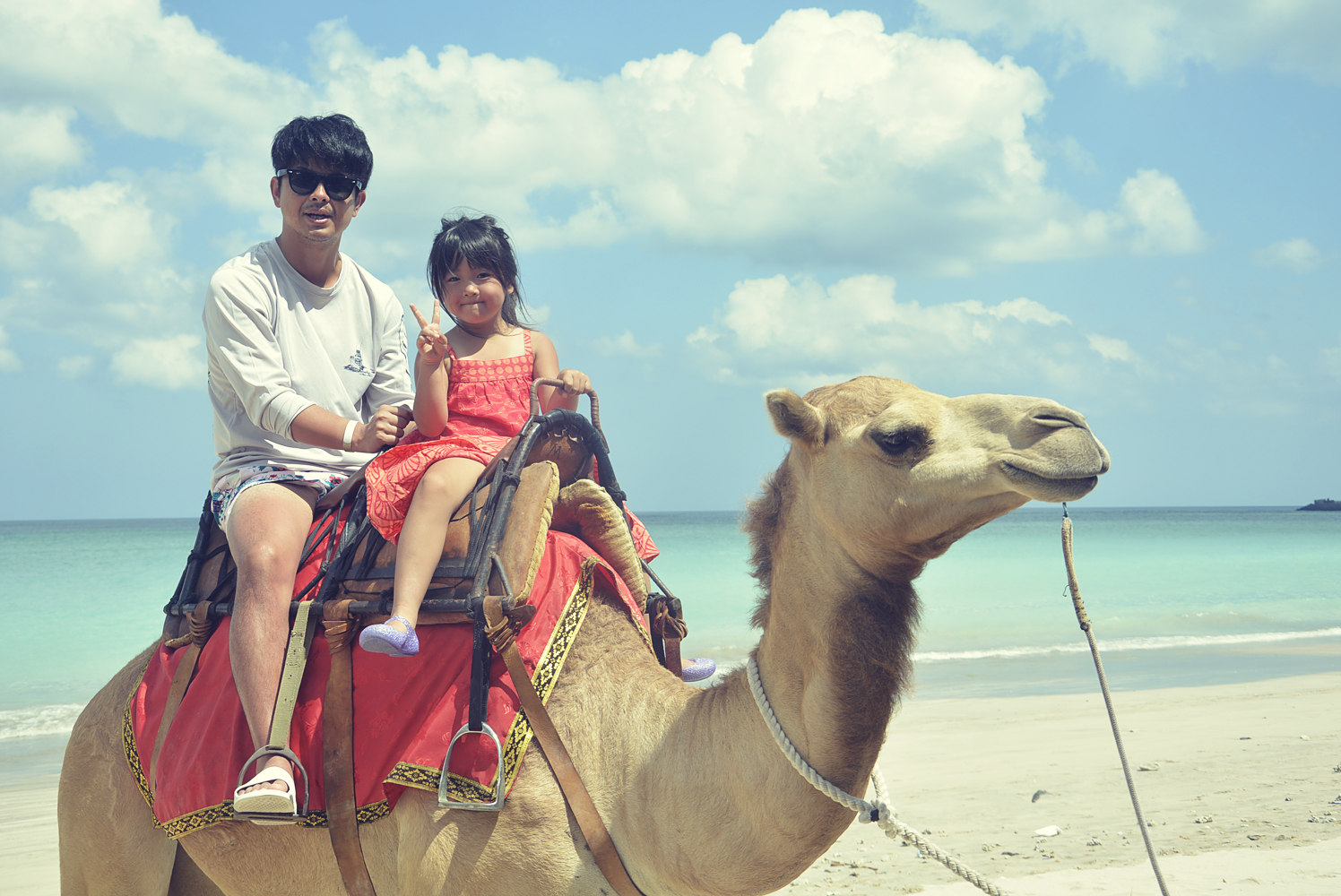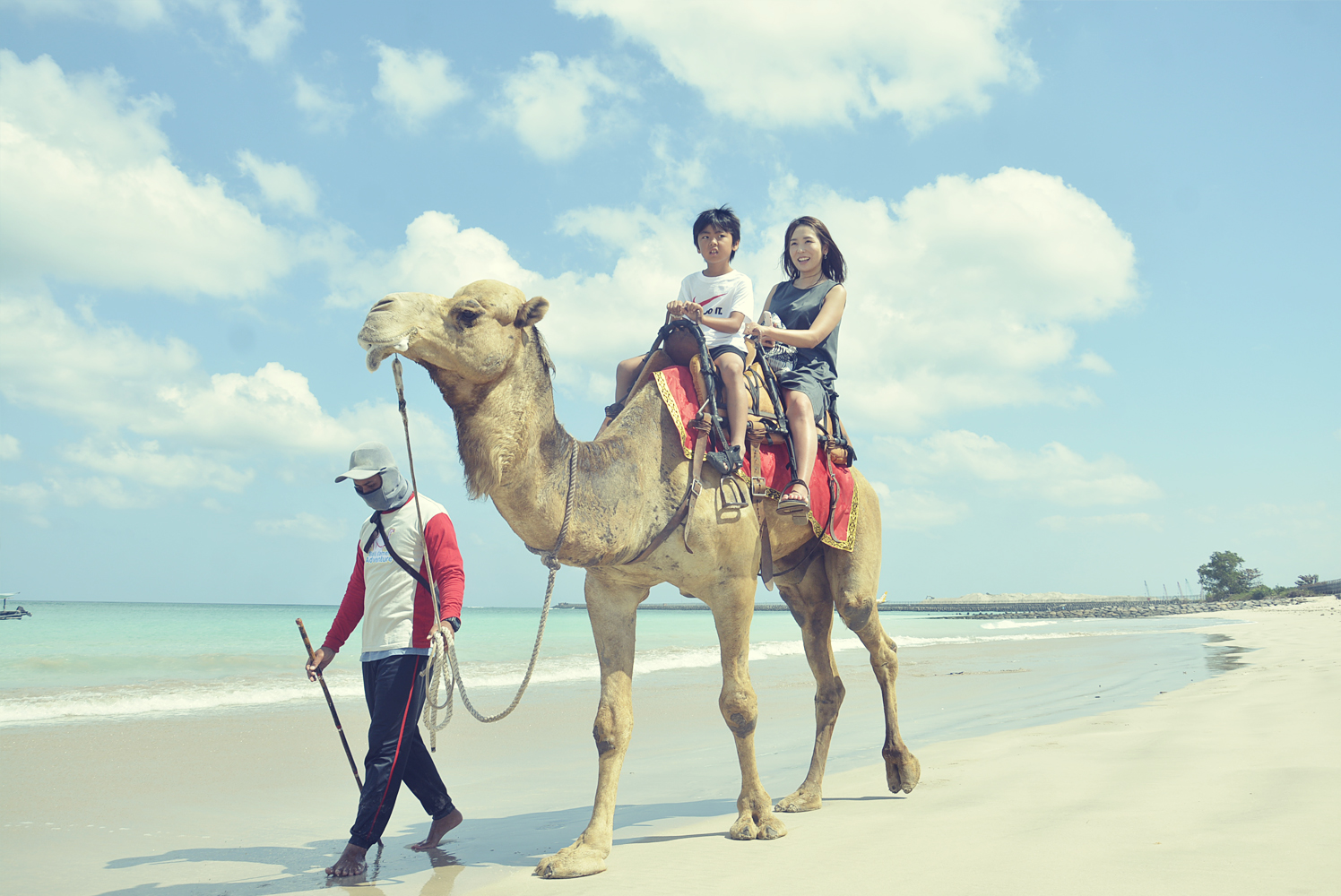 ケランビーチでラクダに乗ってのんびり過ごしてみてはいかがでしょうか。