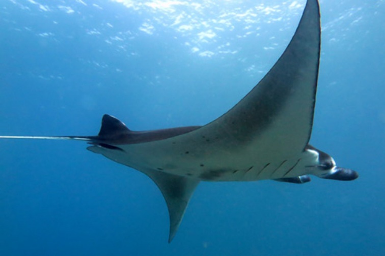 また、通年を通してマンタも現れます。多いときには15~20匹になる事もあり、その中にはブラックマンタも混じっている事も多々あります。
