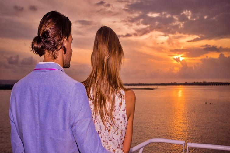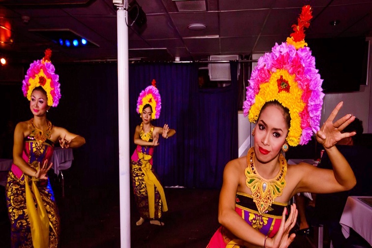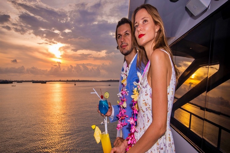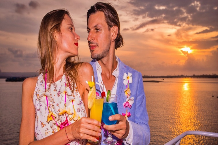 バリ島沿岸を巡航するロマンティックなディナークルーズです。バリ島の美しい夕日を眺め、海風をお楽しみいただいた後は、船内で生演奏やショー、ビュッフェをゆっくりお楽しみください。天気のいい日にはオレンジ、赤、紫と変わりゆく空の色を見ることができます。