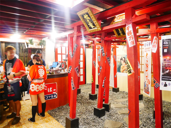 店内は古き良き日本の風情といった感じで、上野にありそうな昭和を感じさせる雰囲気。鳥居や提灯など、全部スタッフさんが一から手作りして作り上げた店内だそう!