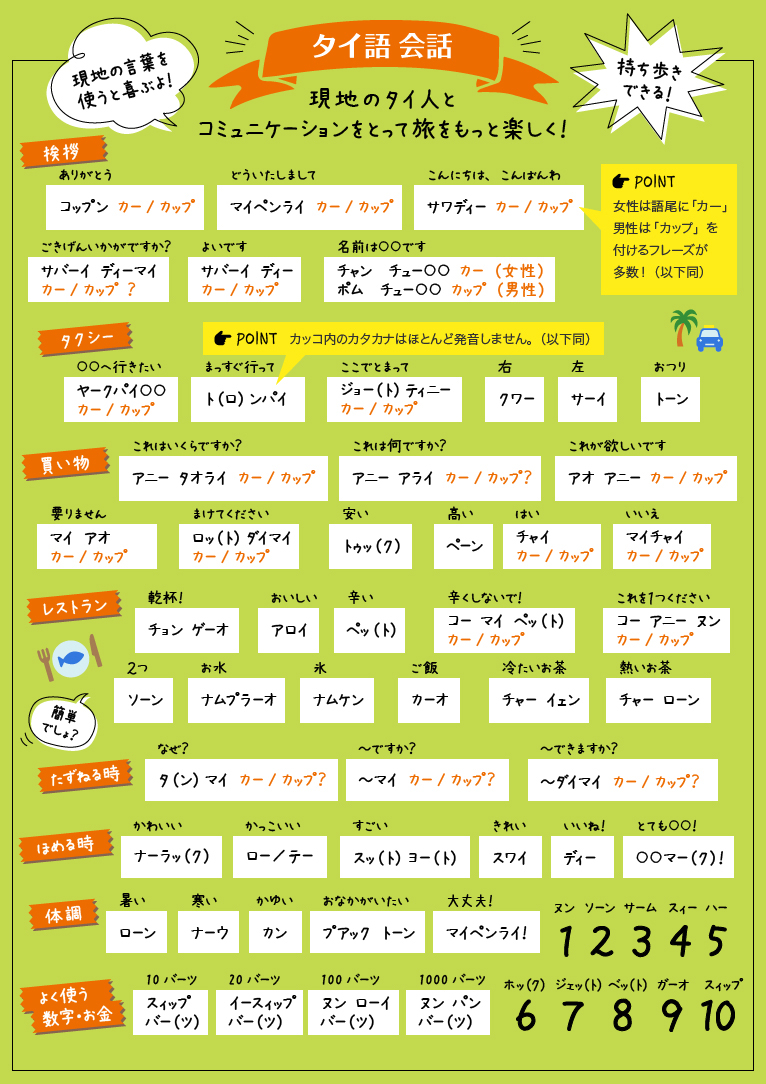 タイではタイ語が主流ですが、簡単な英語も通じます。タイ語には日本語の「が」や「の」などの接続詞がないので、単語だけでも伝わりますよ。発音がちょっと難しいですが、現地の人の言葉を真似して使ってみてください♪タイ旅行がもっと楽しくなりますよ!