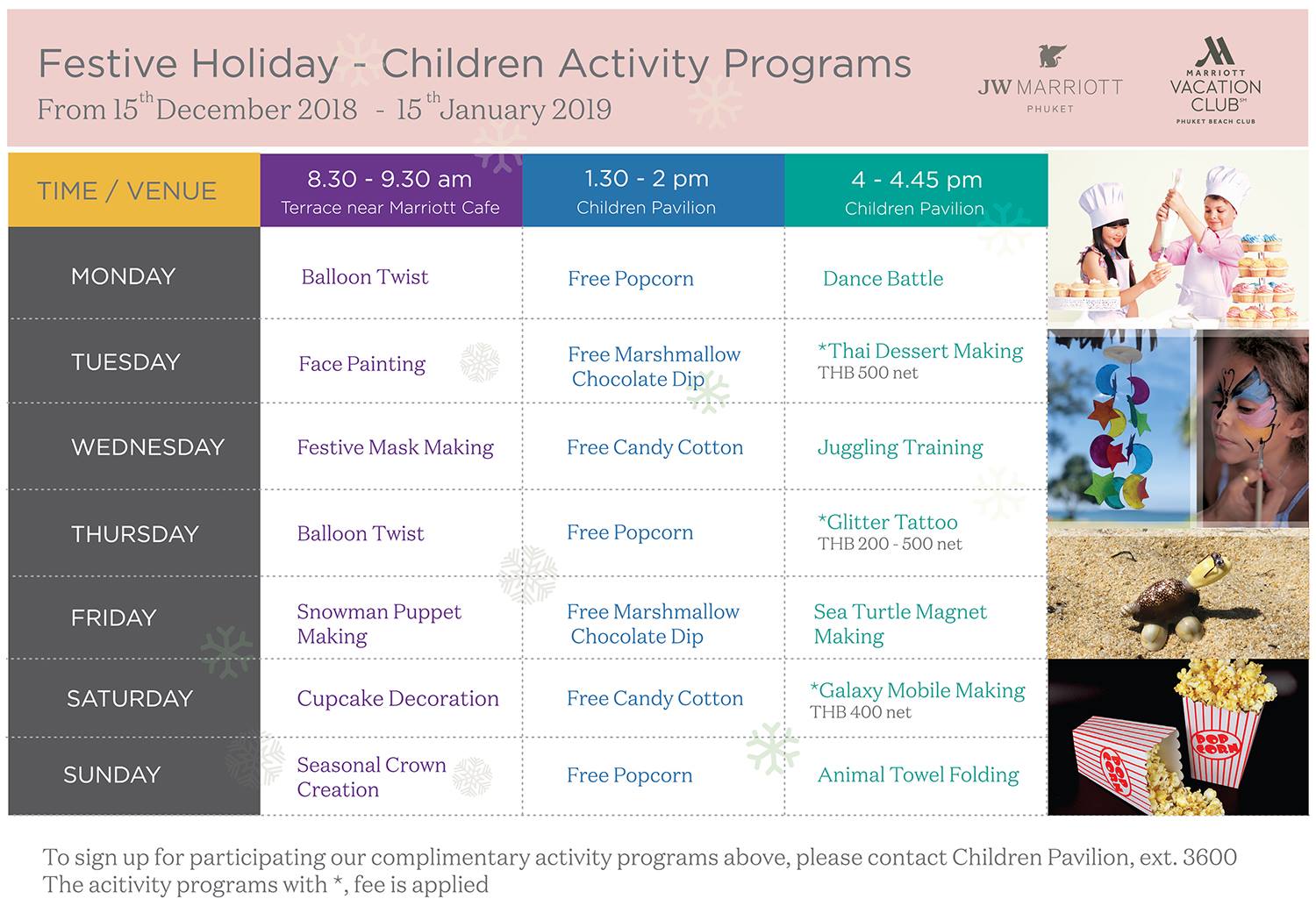 JW マリオット プーケットのキッズルームは、プーケット島でも有数の、充実したプログラムが整っている施設です。小さい子供から10代の子供までが楽しめる工夫が施されています。10代向けには、パソコンや大画面があるシアタールーム、Sonyプレイステーション、パズル、ビリヤード、卓球など。小さい子供向けに、人形のお家や組み立て台、積み木、監督者がついたリトル タートル プログラムなどの用意があります。