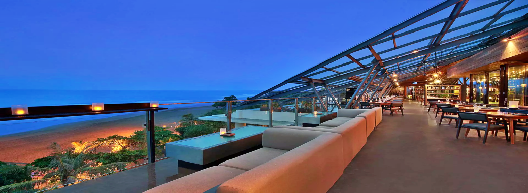 大人気ルーフトップバー「ムーンライト」は、景色が抜群にいいと、宿泊以外のゲストからも人気です。スミニャックビーチを一望でき、夕刻にはインド洋に沈む幻想的な夕日が見られることで、連日たくさんのお客さんが足を運ぶ人気スポットです。テラスに出て夕日を眺めたり、バーに腰を下ろしてカクテルやDJの刻むビートを楽しむこともできます。 ディナーにはアジア各地のモダン料理をお召し上がりください。朝食会場にもなっています。