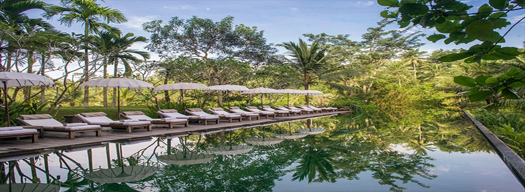 2008年に建てられたこの壮大なリゾートは、ウブドの中心部からも程近いビスマ通りにある高級ブティックリゾート。 カンプハン川の渓谷を見下ろす斜面にあるスイートとヴィラからは、熱帯雨林の渓谷とリゾート独自の水田の素晴らしい景色を眺めることができます。内装、外装にふんだんに使われている木がリゾートの廻りを囲んでいるウブドの大自然とマッチして、お客様の心と体をリラックスさせてくれます。最上階のロビーからエレベーターで下っていくと、客室棟や全長32メートルもある大きなプール、ヨガスタジオ、スパ、レストラン、チャペルなどが深い緑の中に静かに点在。客室はビルディングタイプのスイートとプライベートプール付きヴィラの2タイプあり、どちらもコマネカらしいお洒落な雰囲気に浸れます。お部屋の窓からはライステラスや渓谷が望め、ショッピングや街歩きにも便利なロケーションのため、人気のリゾートです。