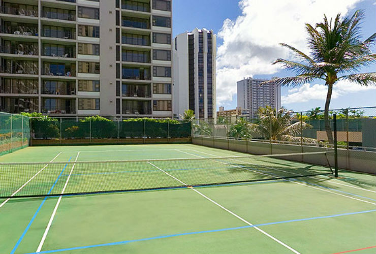ホテルの6階にある、充実したレクリエーションエリア。エリア内にはプール、ジャグジー、バーベキューエリア、テニスコート、バスケットコート、キッズエリア、サウナなどがあります。プールサイドにあるジャグジーは、普通の温度と高めの温度の2種類あるのが特徴です。バーベキューエリアでは、ダイヤモンドヘッドを眺めながらお肉を楽しめるという贅沢な夢も叶います!ご家族やグループにはとてもおすすめの設備です。