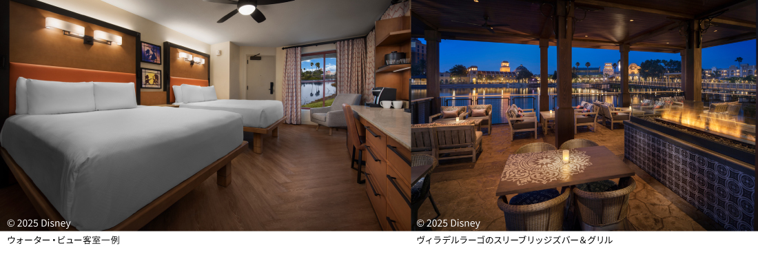 広さやインテリアはスタンダード・ビューと同様の、さらにお部屋から湖やプールを眺めることができるお部屋です。キングサイズベッド1台のウォーター・ビュー・キングまたは2台のクィーンサイズベッドのツインタイプとなります。