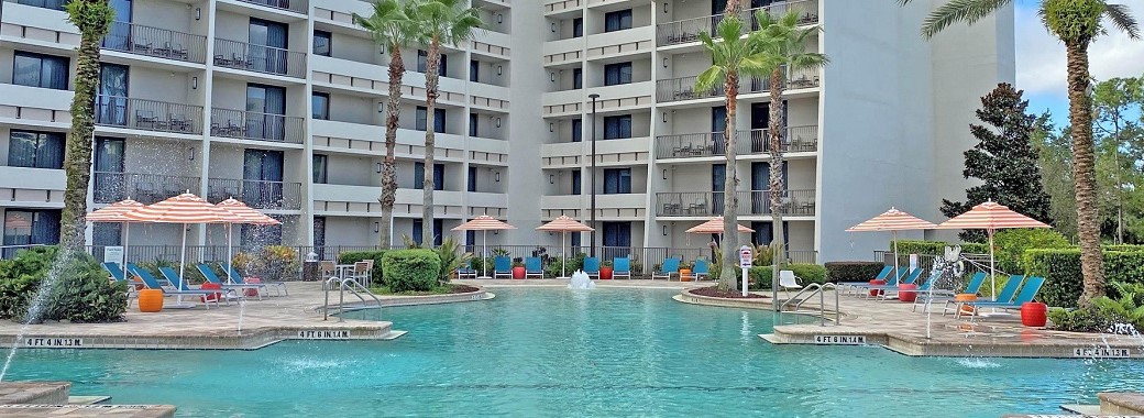 ウォルト・ディズニー・ワールド・リゾートまで徒歩15分圏内という好立地のホテル。ウォルト・ディズニー・ワールド・リゾートまでのシャトルバスも出ているのでとても便利です。屋外プールをご利用いただけるほか、アメリカ料理を提供するPalm Breezes Restaurantでは朝食、ランチ、ディナーをお楽しみいただけます。プールサイドバーおよび24 時間営業のフィットネスセンターがあるほか、室内には冷蔵庫や電子レンジなど便利な設備が備わっています。