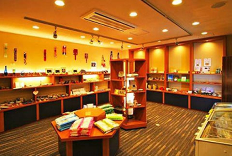1階エレベーター前の売店では地元の名産品や工芸品を数多く販売しています。