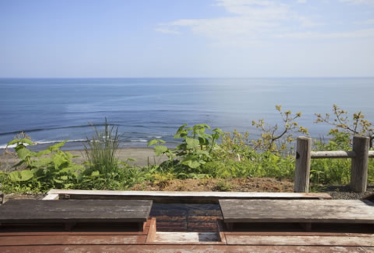 太平洋と一体化したような感じがする露天風呂での入浴は、シーサイドならではの格別な贅沢。