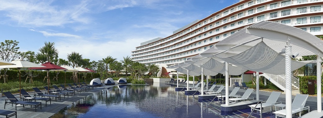隣接するダブルツリーbyヒルトン沖縄北谷リゾートの2つの屋外プール(夏季営業)が無料でご利用可能!