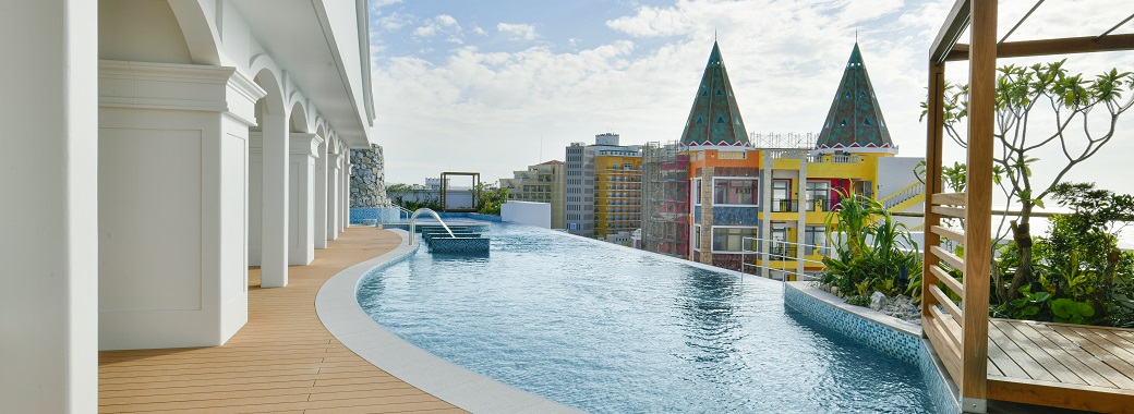 メイン棟最上階にあるスパにはインフィニティプールをはじめ、沖縄では数少ない天然温泉、ラウンジなど老若男女楽しめる空間となっております。