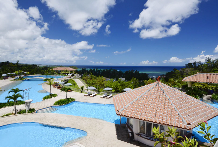 オキナワ マリオット リゾート & スパは、高台に位置しており美しい東シナ海を一望できる15階建てホテル。