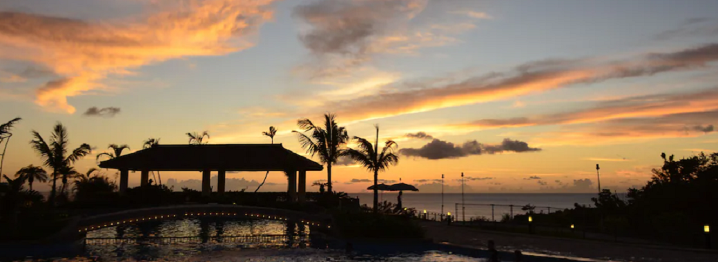 また沖縄県内最大級の広さのガーデンプールは、ロングウォータースライダーやお子様にも安心してご利用できる子供用プールも完備。ガーデンプールからも東シナ海に沈む夕日を一望できます。