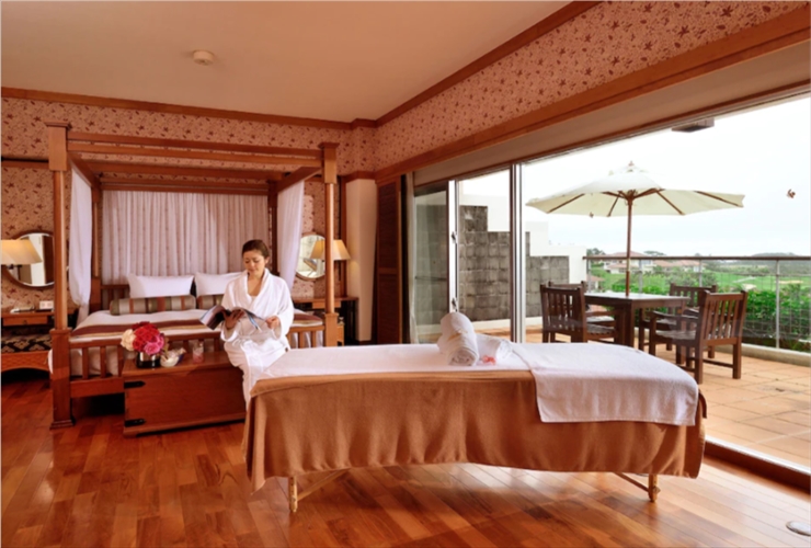 オーキッド棟に位置するオーキッドにはオーシャンビューのバルコニーにジェットバスを設置。