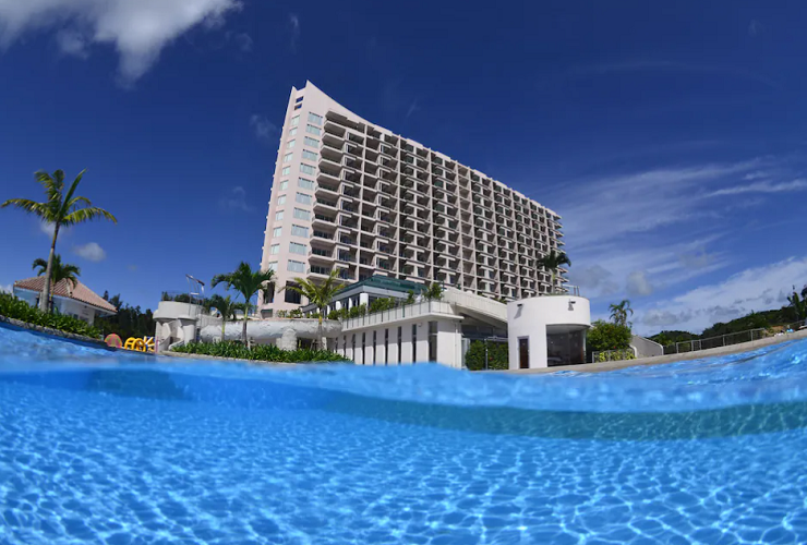 高台に位置している15階建てホテルで全室オーシャンビューのゲストルームからは、東シナ海の碧い水平線や夕日に染まり行く水面を見渡すことができます。