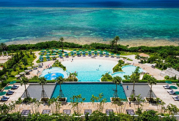 ホテルモントレ沖縄スパ&リゾートは那覇空港から北へ車で80分、沖縄を代表するリゾート地、恩納村に位置しております。全てがオーシャンビューの客室となっており、美しいグラデーションの海も独り占め。ホテル目の前には冨着ビーチからつながる天然の「タイガービーチ」が広がっており、様々なマリンアクティビティが体験出来ます。また、サンセットも望めるウェイブプールやキッズプールなどの4つのプールもあり、広大な敷地内で十分に楽しめる大型リゾートです。
