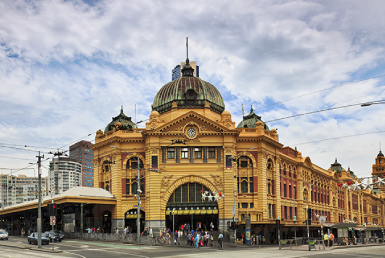 1854年に建てられたフリンダースストリート駅は、メルボルンのランドマーク的な存在です。見た目も立派で、ライトアップされる夜はとても見応えがあります。また、そのキレイな外観から「魔女の宅急便」のワンシーンに使われていると言われています。中にレストランやお店も入っているのでとても便利です。