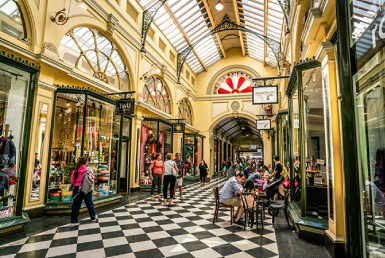 1870年にオープンした、オーストラリアで最も古く、最も長いアーケードです。メルボルンの中心部で且つ室内にあるので、天候や気温に左右されることなくお買い物が楽しめます。ユニークなプレゼントや地元ならではのジュエリーやビンテージなどの専門店、カフェなどが軒を並べています。