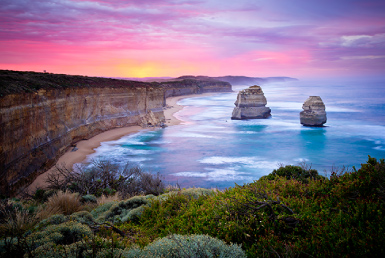 ビクトリア州南西部のトーキーからアランズフォードまで約240キロの海岸沿いを走る道路のことで、世界で最も美しい海岸道路と言われています。「12使徒」や「ロック アード ゴージ」、「ロンドンブリッジ」などの見どころがたくさんあるので、ゆっくり見たい方は1泊するほうがよいです。