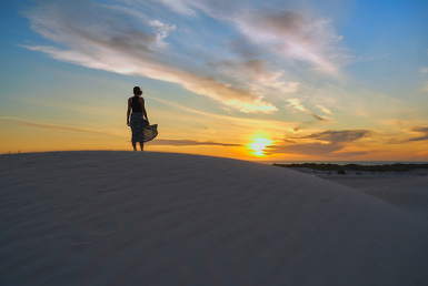”オーストラリアの雪”と言われるほど真っ白でさらさらな砂が広がっているランセリン砂丘。ピナクルズと合わせていく方が多いです。4WDで砂丘を走行を滑走したり、サンドボードで滑ったりしてお楽しみいただけます。