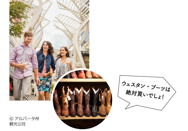 カルガリーもバンフもメインストリート沿いにあらゆるショップが軒を連ね賑わっています。カナダらしいお土産探しも忘れずに!