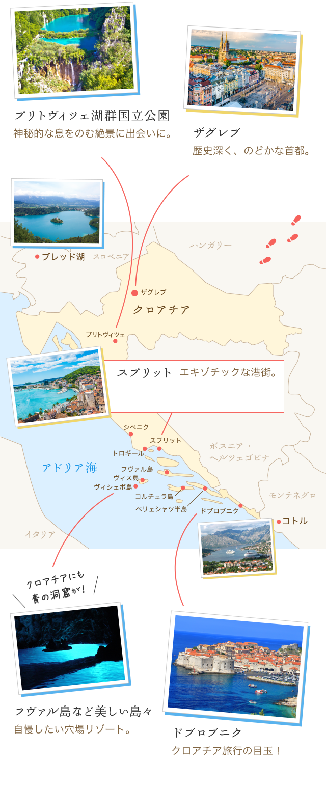 首都のザグレブから、プリトヴィツェ、スプリット、