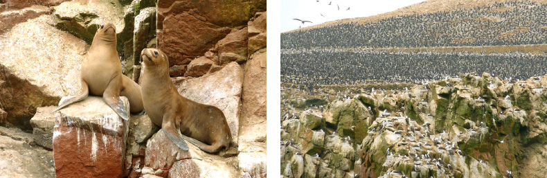 「リトル・ガラパゴス」と呼ばれる「バジェスタス島」は、人間を寄せつけない神聖な野生動物の世界。そんな絶景でありながら、リマから約4時間のパラカスという港街から、ボートに乗って約30分と気軽に行くことができるのが魅力です。ボートから見学する複数の島々には、野生のオタリアや南アメリカオットセイ、島全体を覆い尽くす海鳥、絶滅危惧種のフンボルトペンギンなどを目にする事ができます。また、この島にもナスカの地上絵同様、謎に包まれたアートがあります。「カンデラブロ/枝付きの燭台」と呼ばれており、岩に刻まれた巨大彫刻です。現在は表面が砂に覆われており、砂漠に描かれた絵のように見えます。