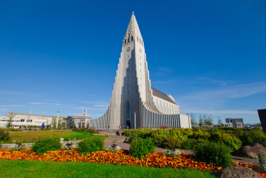 - 噴火した火山から流れ出て冷え固まったマグマをイメージして設計された「ハットルグリムス教会」。奇抜で近未来的なデザインでありながらもアイスランドらしい自然との調和を感じ取れるところが素晴らしい建造物です。内部は高い天井が開放的な空間となっており、巨大なパイプオルガンも見応え十分。教会上部の時計台には展望台があり、チケットを購入して入ることができます(冬期/9:00〜17:00)。レイキャビークのカラフルな街並みを一望できます。
