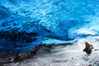 - 氷河の風景を楽しみながら青の洞窟へ!