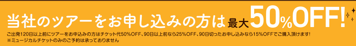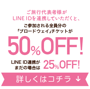 ご旅行代表者様がLINE IDを連携していただくと、ご参加される全員分の「ブロードウェイ」チケットが50%OFF!