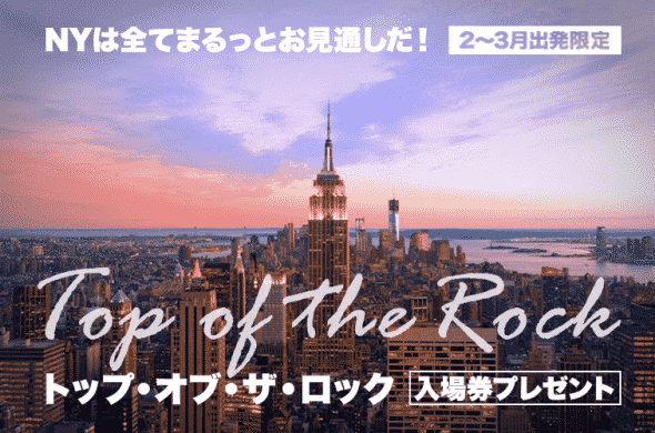 【2~3月出発限定】 トップ・オブ・ザ・ロック入場券プレゼント「NYは全てまるっとお見通しキャンペーン」