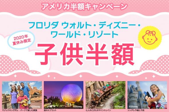 【アメリカ半額キャンペーン】フロリダ ウォルト・ディズニー・ワールド・リゾート子供半額ツアー《2020年夏休み限定》