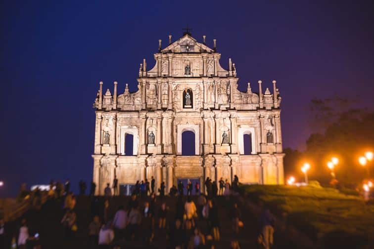 ポルトガルとマカオの歴史を象徴する場所といえば聖ポール天主堂跡があがるでしょう。マカオのシンボルでもあり、マカオで最も有名な観光地です。昼夜問わず多くの観光客が訪れるスポットですが、日没後にはファーザードがライトアップされるために夜に見に行くのをおすすめします。治安が良いため、安心して観光することができます。ライトアップされた聖ポール天主堂跡には厳粛さをも感じることができるでしょう。聖ポール天主堂跡の階段を上って振り返れば「グランド・リスボア」が煌びやかに光っており、過去と現在について考えを巡らすのも良いかもしれません。帰り道には屋店でポルトガルのお菓子であるエッグタルトを食べ歩くのも楽しいです。ポルトガル風情を感じる石畳をしっかりと踏みしめて歩いてみましょう。